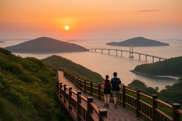 신시도의 가장 큰 장점 중 하나는 걸어서 섬을 둘러볼 수 있다는 점입니다. 구불7길이라고 불리는 트레킹 코스는 아이들과 함께 걷기에도 무리가 없으며, 정상에 오르면 섬과 다리가 어우러진 아름다운 풍경이 펼쳐집니다. 여름날 저녁, 땀을 식히며 일몰을 바라보는 순간은 그 자체로 힐링입니다.