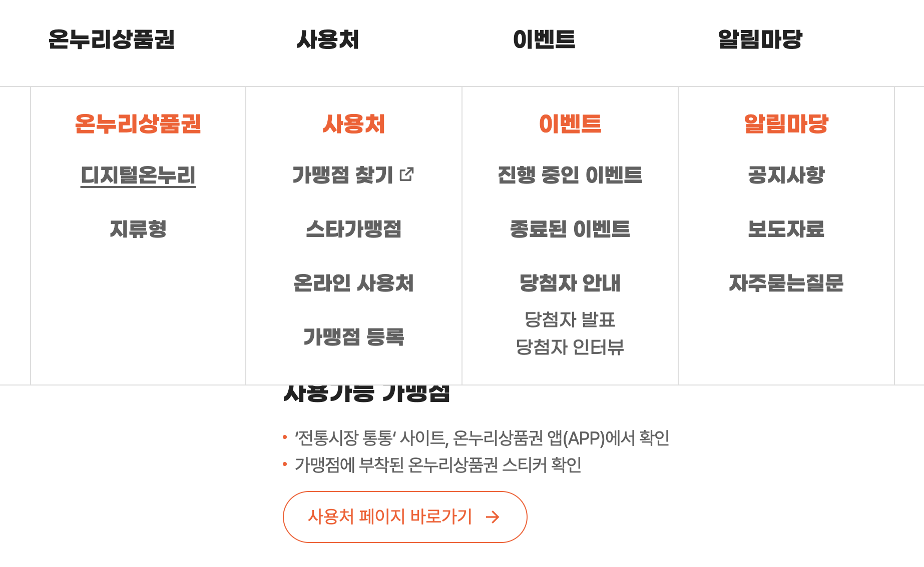 온누리 상품권 사용처를 이용하기 전 아래 항목을 확인하세요.